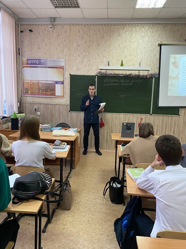27 декабря на территории муниципального бюджетного общеобразовательного учреждения «Школа №19(25) имени вице-адмирала В.М. Головнина» заведующий сектором «Книга Памяти Рязанской области» отдела молодежных проектов и волонтерской деятельности библиотеки им. Горького Дмитрий Андреевич Винокуров провел открытый урок на тему человеческого подвига по произведению А.А. Федеева «Молодая гвардия».