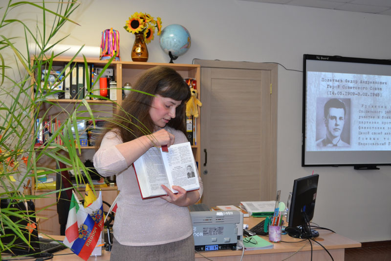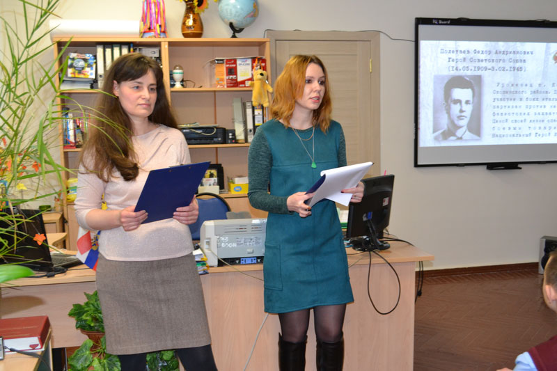 31 января прошла познавательная и запоминающаяся встреча сотрудников библиотеки с учащимися школы-интерната имени Героя Советского Союза, Национального Героя Италии Федора Андриановича Полетаева. Библиографы краеведческого информационного отдела провели беседу для школьников, посвященную дню гибели героя.