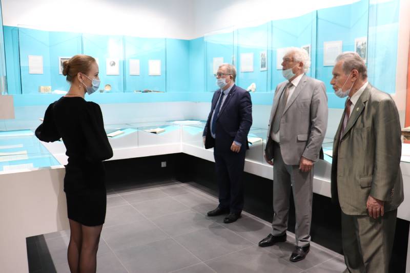 Также на встрече шла речь о развитии библиотечной сферы региона. Борис Владимирович Гусев отметил выдающийся уровень областной библиотеки имени Горького и большое внимание, которые уделяют правительство области и лично глава региона модернизации библиотек области. Директор библиотеки имени Горького Наталья Николаевна Гришина вместе с коллективом авторов представила собравшимся результат пятилетней научно-исследовательской работы библиографов центра редких и ценных изданий библиотеки (О. К. Гербековой, Е. А. Соболевой, О. О. Агапкиной) – «Каталог библиотеки Головниных» (двухтомное издание, включившее в себя описание более 700 экземпляров книг и гравюр), изданный к 245-летию со дня рождения прославленного рязанца, мореплавателя, исследователя Тихого океана и Курильских островов Василия Михайловича Головнина. Глава региона Николай Викторович Любимов отметил глубину и масштабность проделанной научной работы.
