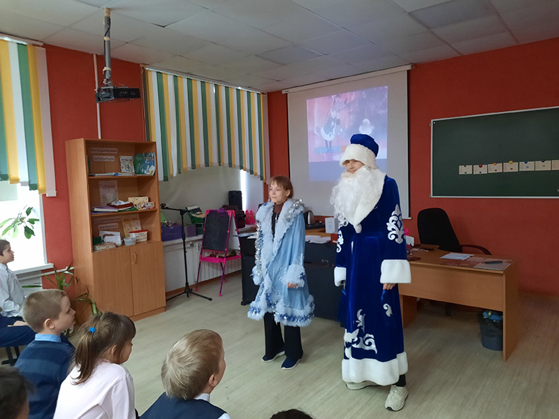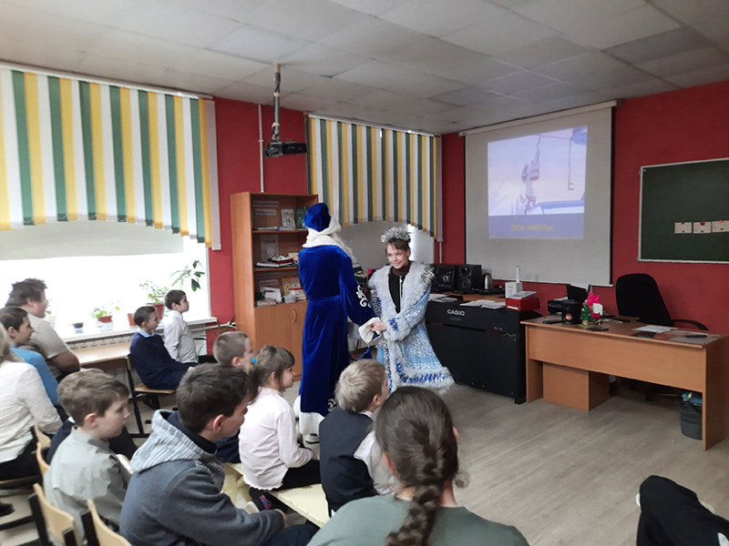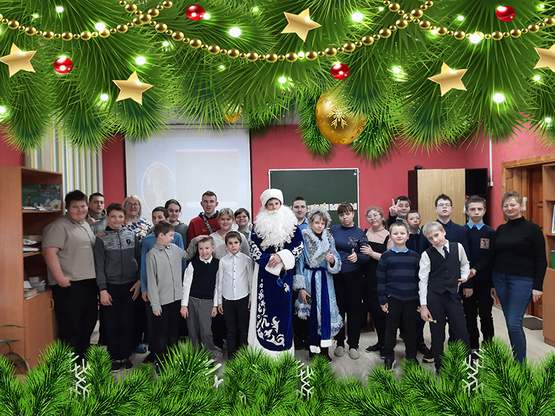 Завершился праздничный вечер встречей с Дедом Морозом и Снегурочкой из мультсериала «Ну, погоди!». Ребята с удовольствием примерили на себя карнавальные костюмы и хором исполнили песню из любимого мультфильма.