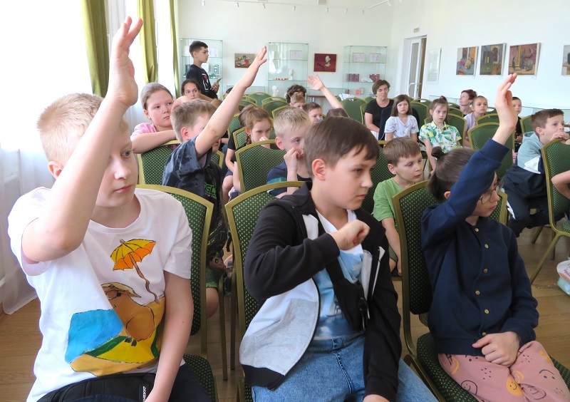 Вместе с сотрудником кафедры детской литературы мальчишки и девчонки отправились в увлекательное путешествие по страницам произведений русских писателей-сказочников. Весёлые загадки помогли юным участникам вспомнить знакомые с детства сказки А. С. Пушкина, В. А. Жуковского, А. Н. Толстого, С. Т. Аксакова, П. П. Ершова, Е. Л. Шварца.