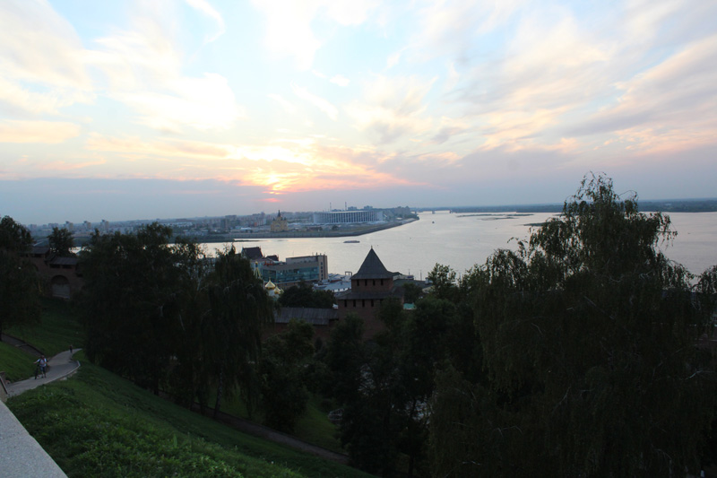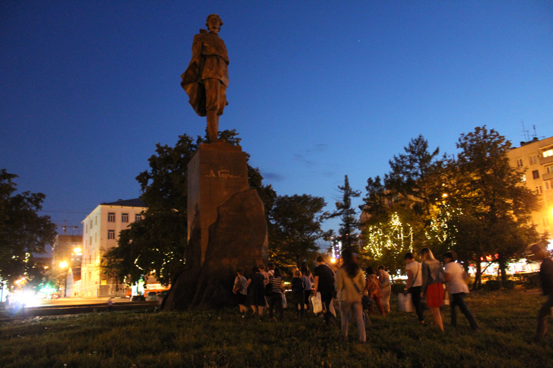 Мы осмотрели Нижегородский кремль, увидели Волгу и знаменитую Стрелку, где с Волгой сливается Ока, прошли по вечерней Большой Покровской и, конечно, возложили цветы к памятнику Горькому.