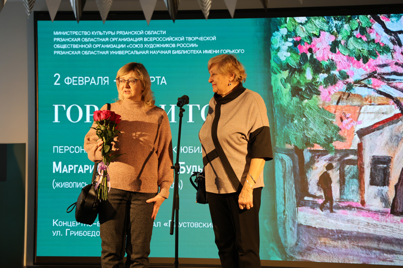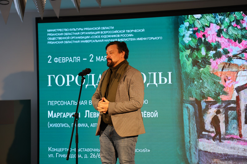Виктор Леонидович Грушо-Новицкий поздравил художницу с юбилеем и открытием персональной выставки, с уважением и теплотой отозвавшись о ее творениях: «Маргарита Левкоевна всегда вносит какое-то свое звучание, ее палитра и творческие находки, особая психология работ предполагают охват разных направлений. Всем этим она внесла особый тон в Рязанскую организацию Союза художников России».
