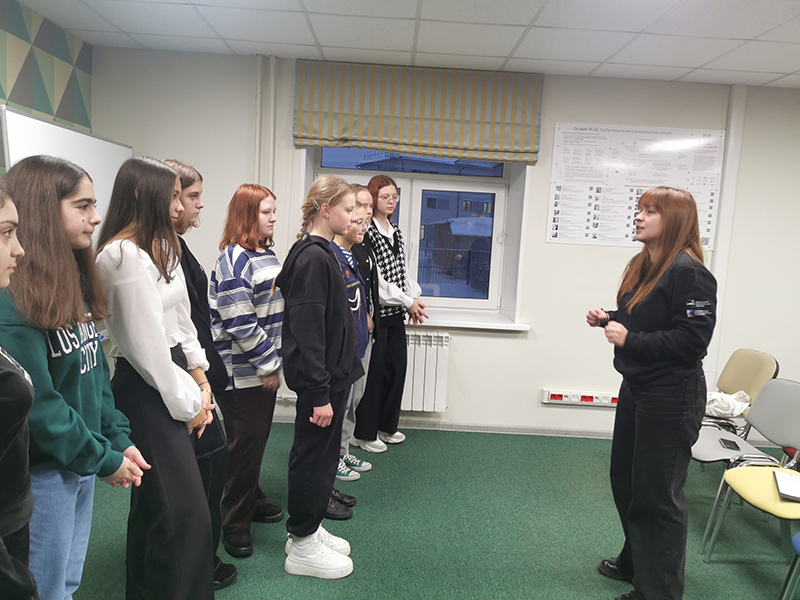 На станции «Культурная» сотрудники ресурсного центра по поддержке добровольчества в сфере культуры Мария Рахманина и Мария Сергеева рассказали молодым участникам про культурное добровольчество, а также погрузили их в мир актерского мастерства благодаря проведенному мастер-классу.