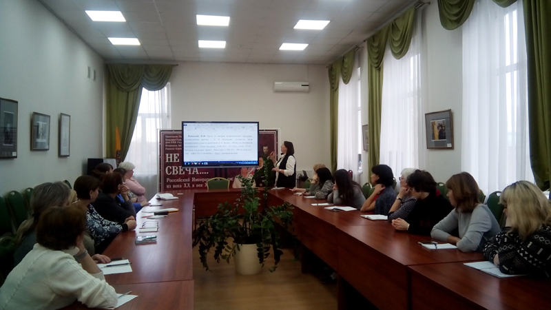 Главный библиограф Екатерина Анатольевна Ауст рассказала о новом ГОСТе Р 7.0.100-2018 «Библиографическая запись. Библиографическое описание», а также разобрала ошибки в списках литературы. Елена Михайловна Кириллова, главный библиограф библиографического центра, рассказала об электронно-библиотечной системе БиблиоРоссика и электронном библиотечном абонементе ЦНМБ.