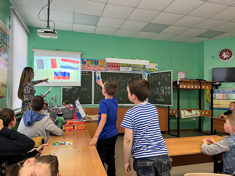 Учащихся познакомили с ресурсами Президентской библиотеки, рассказали о роли фонда в сохранении и популяризация исторического наследия страны. Ребята узнали о государственных символах России, об истории российского флага и значении каждого цвета на полотне. С большим интересом дети посмотрели видеоролики о России и Московском Кремле. Слаженно исполнили гимн Российской Федерации, прозвучавший во время урока.
