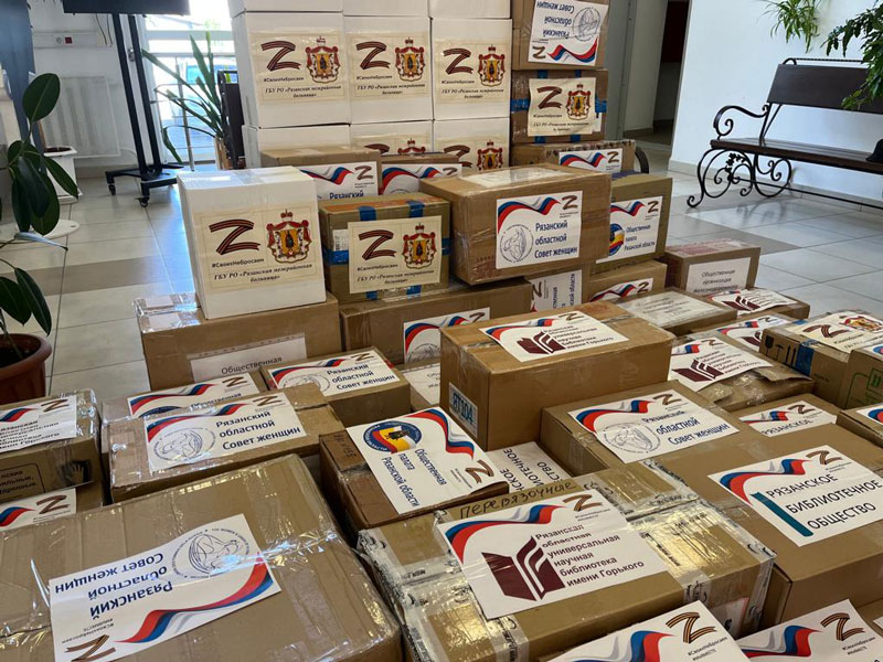 С июня по октябрь жители Рязанской области, коллективы различных учреждений, частные предприниматели собрали 564 посылки с гуманитарной помощью, некоторые организации присылали помощь целыми грузовиками от 200 килограммов до 3 тонн. Сбор посылок помогали организовать администрации поселений, муниципальные женсоветы, профсоюзы, школы, детские сады. Вместе с вещами и продуктами в посылках всегда рисунки и теплые письма, адресованные военнослужащим. Сотрудники областной библиотеки взяли на себя всю физическую и организационную нагрузку по работе с приемом и отправлением гуманитарной помощи.