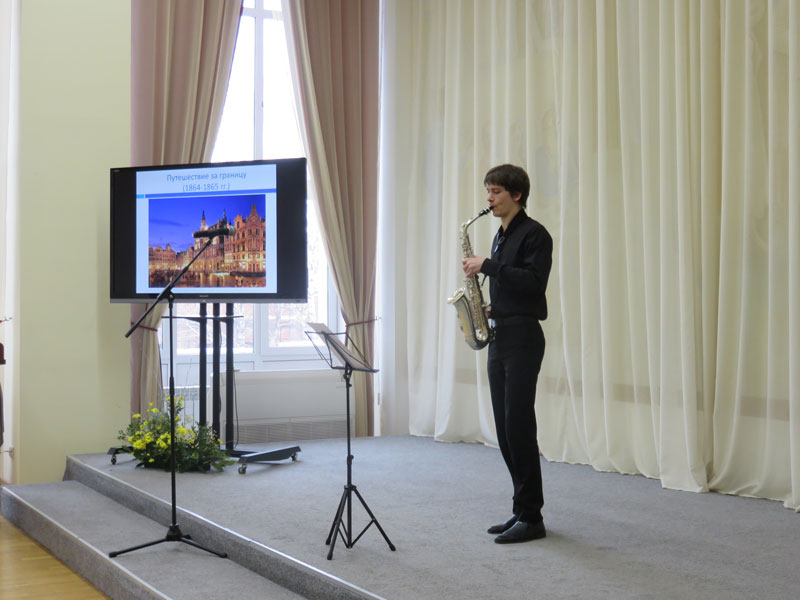 В этом году отмечается юбилей ещё одного великого композитора – Сергея Васильевича Рахманинова. Отличным завершением встречи стало выступление преподавателя по классу саксофон Романа Наумца, который исполнил «Вокализ» С. Рахманинова.