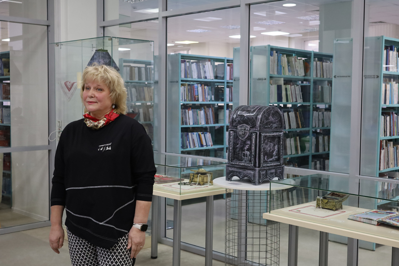 Экспозиция включает 20 работ. Это шкатулки, ларцы, сундуки разных форм и размеров, выполненные в различных техниках. Дополнили выставку книги из фонда библиотеки, рассказывающие о русском быте и нравах, об истории возникновения сундучных изделий, а также об их значении в культуре русского народа.