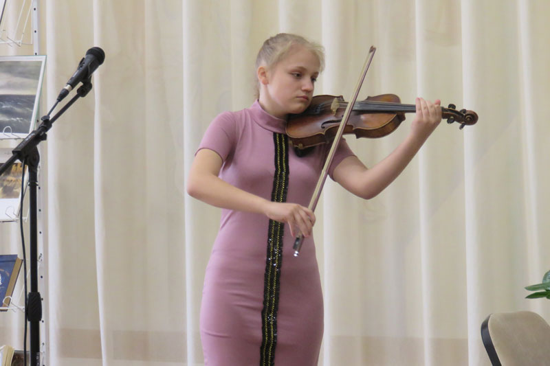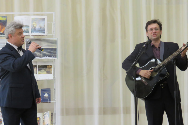 Живо участвуя в обсуждении картин, наши зрители словно становились свидетелями происходящего. Эмоциональное воздействие полотен усиливало звучание песен морской тематики: «Варяг», «По морям, по волнам», «Вечер на рейде», «Севастопольский вальс» и других в прекрасном исполнении солистов академического хора «Ретро» ДК «Приокский» Владимира Сохрина, Александра Горбенко, Татьяны Ивашкиной. Проникновенным было выступление юной скрипачки Екатерины Уханёвой, учащейся детской школы № 1 г. Рязани (концертмейстер – Елена Балашова).
