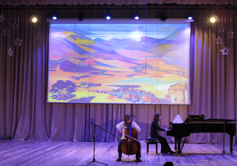 Органично прозвучали музыкальные номера в исполнении учащихся и преподавателей детской школы искусств № 2. На фортепиано сыграла «Танец медвежат» Ю. Виноградова Есения Гасымова. Красиво исполнил на гитаре произведение И.С. Баха «Буррэ» Кирилл Кондаков. О цикле картин Мартироса Сарьяна «Сказки и сны» говорила в своем выступлении Вероника Аленушкина.