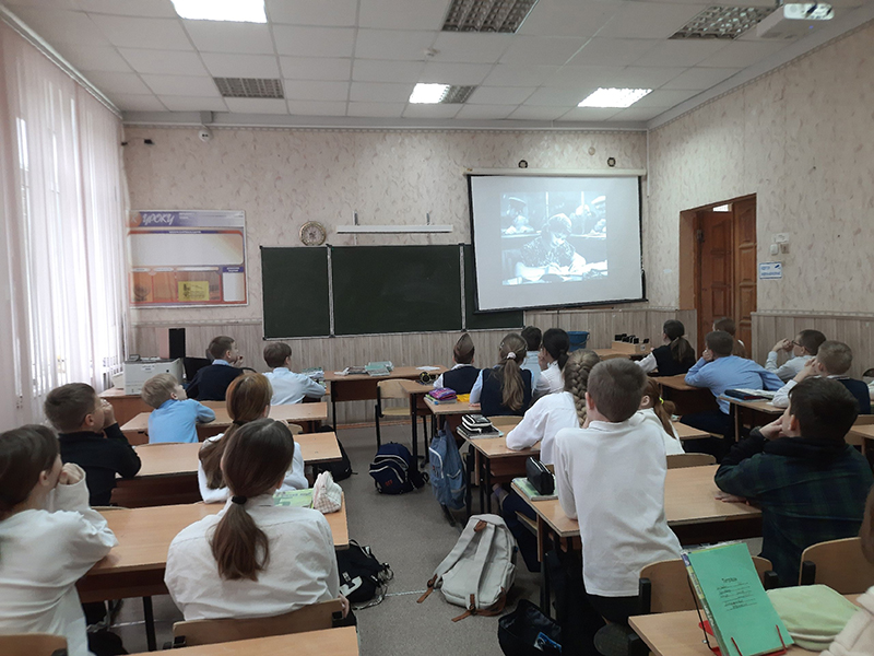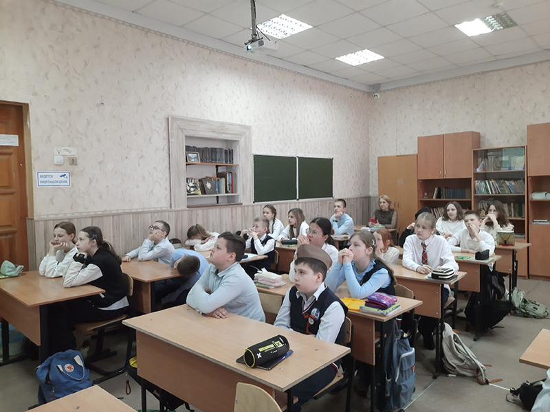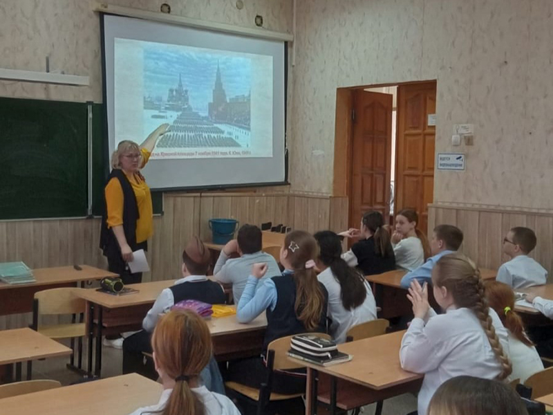 Накануне праздника 9 Мая ученики 5 класса рязанской школы № 19(25) познакомились с художественными полотнами, созданными во время Великой Отечественной войны. Интерактивную программу провели сотрудники Центра литературы по искусству в рамках реализации цикла мероприятий «Искусство против войны», приуроченных к 80-й годовщине Победы советского народа в Великой Отечественной войне и в Год защитника Отечества.
