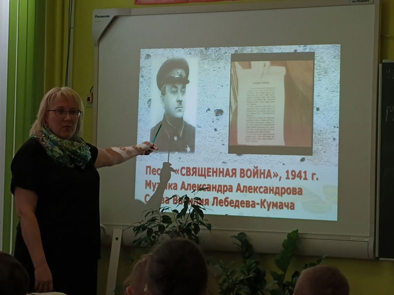 За один урок ребята узнали много нового и интересного. Познакомились с творчеством артистов, выступавших перед бойцами с фронтовыми бригадами. Узнали, как распространялась информация в те далекие времена, когда из средств связи было только радио и газеты. Особый интерес вызвал рассказ о создании песни «Священная война», созданной сразу после нападения фашистов на нашу страну. Великие имена, знакомые и незнакомые мелодии, связь поколений посредством музыки - всё это сделало встречу незабываемой.