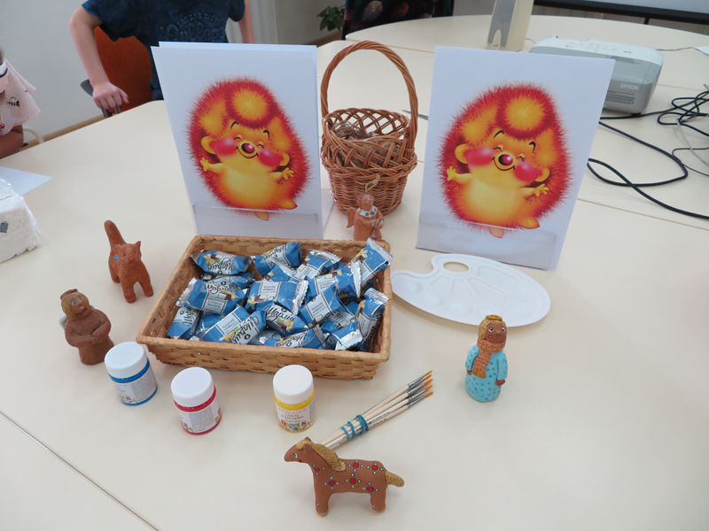 На кафедре детской литературы (ул. Грибоедова) художник-керамист Ирина Сельмен провела мастер-класс «Улыбайтесь, маски». Под руководством специалиста дети с помощью кисточек и акриловых красок раскрашивали заготовки глиняных кулонов с изображением улыбающейся театральной маски.
