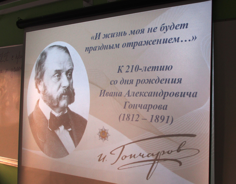 В ходе встречи ребята познакомились с жизнью и творческим путем одного из крупнейших писателей-реалистов XIX века, автором романов «Обыкновенная история», «Обломов» и «Обрыв». В них ему удалось запечатлеть жизнь столичного и губернского общества, быт и нравы помещичьих усадеб в преддверии реформ 60-х годов. Писатель сумел в своих произведениях отразить и одну из черт русской души, которую впоследствии критик Николай Добролюбов назовет «обломовщиной».