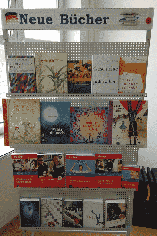 Всего в немецко-французский читальный зал в этом году поступило 116 книг и электронных изданий. Неподдельный интерес гостей вызвали бестселлеры по версии журнала «Шпигель» (Spiegel-Bestseller). Это детективный роман Доры Хельдт «Мы – хорошие», исторический роман Барбары Штоллберг-Рилингер «Мария Терезия», который стал также лауреатом премии Лейпцигской книжной ярмарки 2017 года в номинации «Эссеистика», книга профессора Андреаса Михальзена «Лечение силами природы. Мой опыт из практики и исследований», а также историко-философские издания израильского военного историка, профессора Юваля Ноя Харари «Краткая история человечества» и «Хомо деус: Краткая история завтрашнего дня».