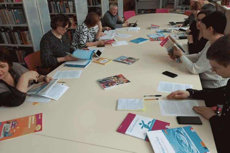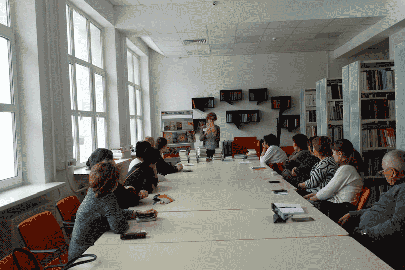 В немецко-французском читальном зале нашей библиотеки прошел День информации для учителей и преподавателей немецкого языка. Был подготовлен обзор художественной, отраслевой, методической литературы и электронных ресурсов, поступивших в библиотеку в рамках сотрудничества с Немецким культурным центром им. Гёте.