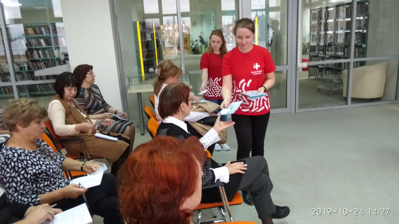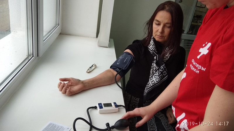 В завершение Алексей Юрьевич ответил на вопросы присутствующих, а волонтеры Дарья Сергеевна Селькова и Юлия Сергеевна Орлова раздали участникам мероприятия буклеты «Что нужно знать об инсульте» и «Оберегая сердца». Желающим наши гости замеряли артериальное давление и всем пожелали следить за своим здоровьем!