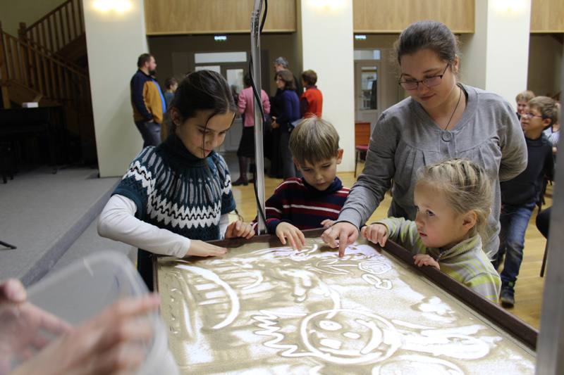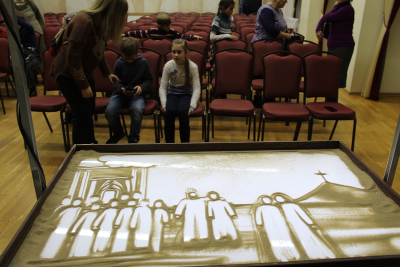 Песочные зарисовки Марины Бритовой, художественного руководителя театра песка «БРИМ», как всегда позволили всем присутствующим испытать эффект присутствия во время рассказа о библейских событиях.