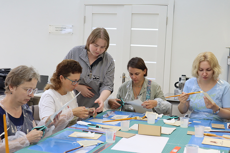 На мастер-классе сотрудники центра рассказали и показали, как в домашних условиях можно провести ремонт книги: укрепить разрывы, восполнить утраты. Рассмотрели наиболее часто возникающие виды повреждений переплетов и дали практические советы по их устранению.