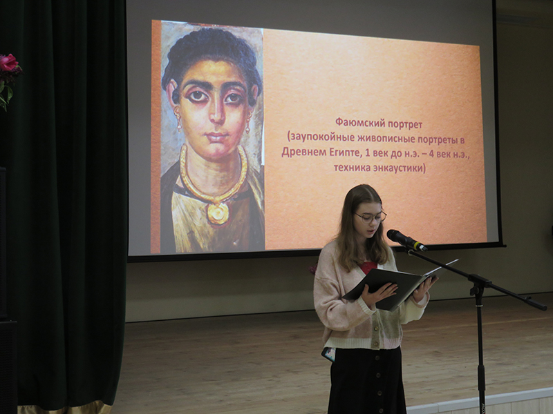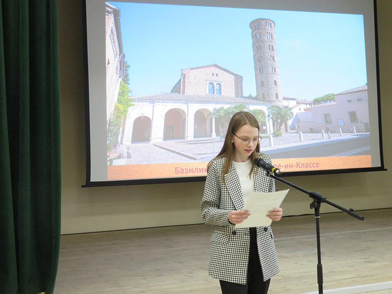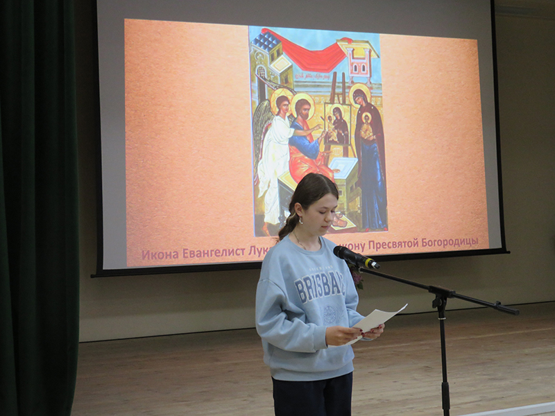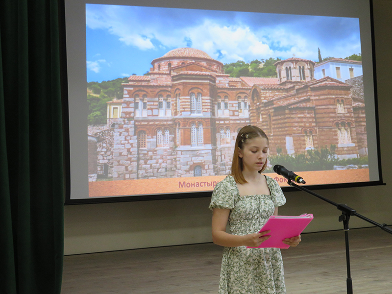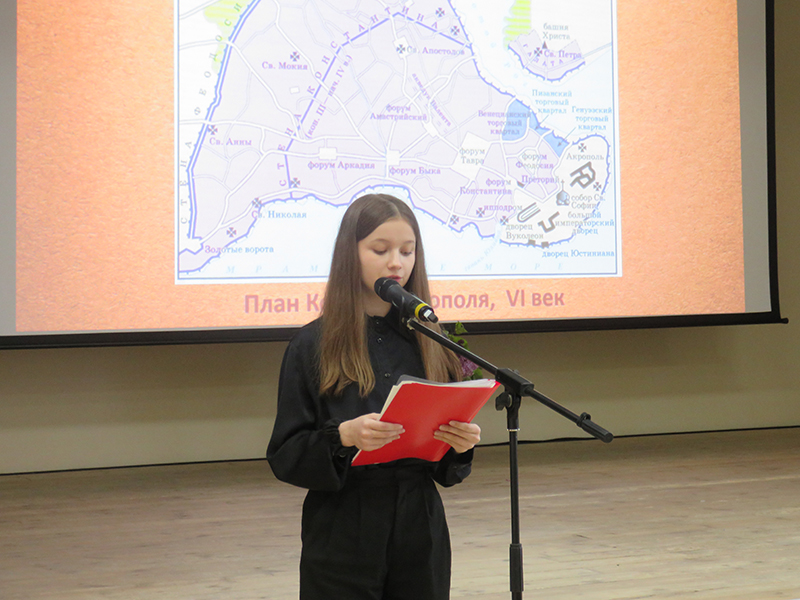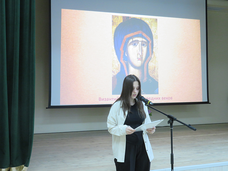 Ученики выпускных классов подготовили рефераты и рисунки на самые разные темы. Ребята рассказали об известных памятниках, церквях, соборах и их внутреннем убранстве. Выступления школьников сопровождала видео презентация, подготовленная сотрудниками центра литературы по искусству библиотеки имени Горького. Библиотекари познакомили участников конференции с книгами и альбомами, посвященными искусству Византии.