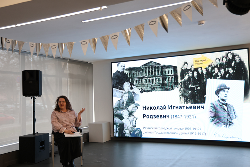 Вторая часть встречи была посвящена истории Рязани. Методист Школы креативных индустрий Софья Давыдова познакомила участников с известными жителями города, среди которых Николай Игнатьевич Родзевич, Александр Васильевич Чернышев, Иван Андреевич Салтыков и другие.
