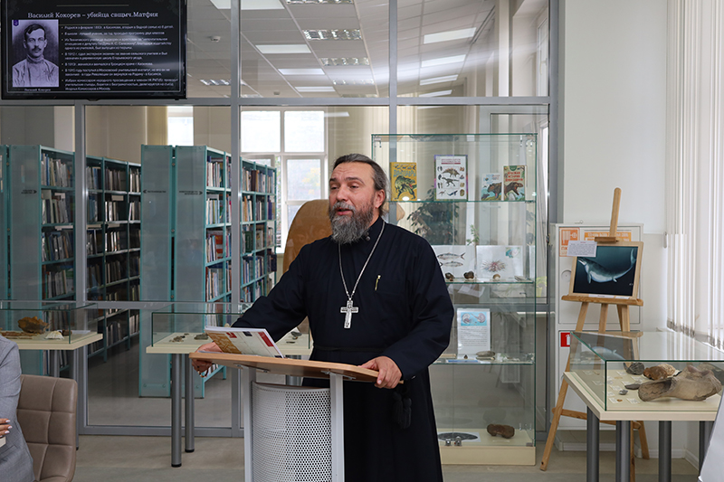 Настоятель Троицкого храма посёлка Тума Михаил Юрьевич Митрохин посвятил доклад памяти священномученика Матфия Рябцева, уроженца тумской земли, чья судьба стала символом верности церковному служению.