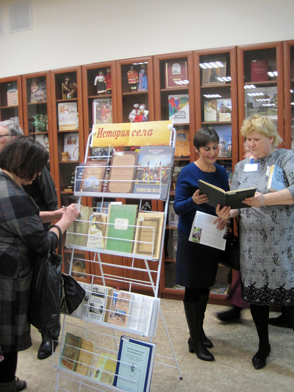 Сотрудники краеведческого информационного отдела подготовили выставку «История села», на которой была представлена еще одна новая книга – «Ижевское. История села» краеведа Виктора Федина, посвященная 630-летию со дня образования населенного пункта. Это издание, прекрасно иллюстрированное старинными и современными фотографиями, знакомит читателей с историей села с XIV века до революции 1917 года. Пристальное внимание уделено раскулачиванию и коллективизации. В книге рассмотрена история народного образования, отдельная глава посвящена здравоохранению населения, приводится генеалогия ижевских родов.