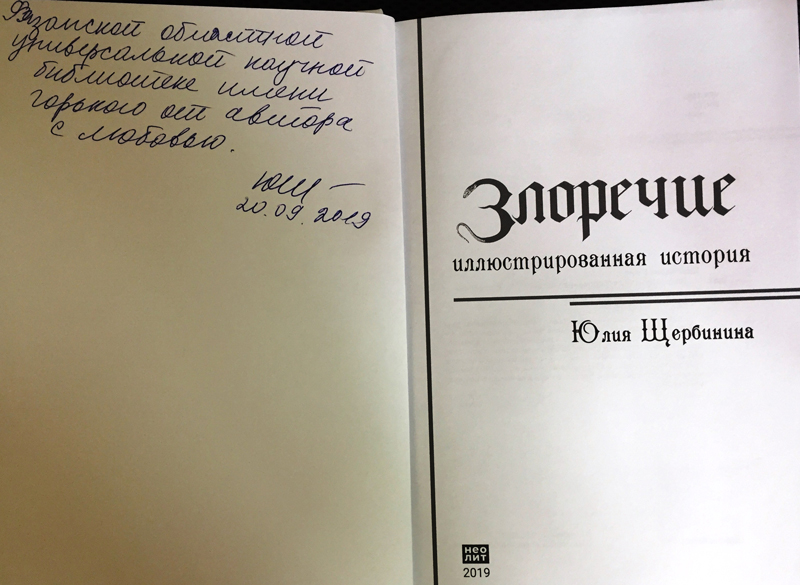 С увлекательной книгой «Злоречие. Иллюстрированная история» и другими трудами Юлии Щербининой читатели могут познакомиться в библиотеке.