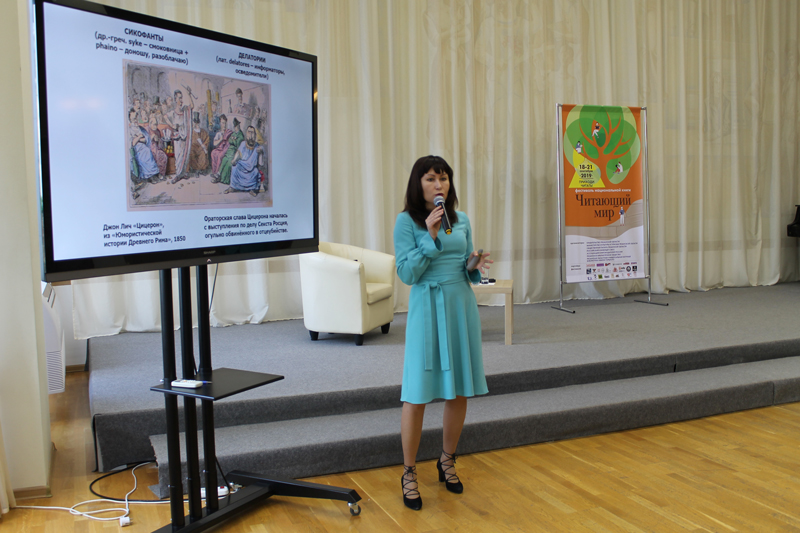 Третий день Фестиваля национальной книги «Читающий мир» подарил гостям библиотеки встречу с филологом, доктором педагогических наук, профессором кафедры риторики и культуры речи филологического факультета Московского педагогического государственного университета Юлией Владимировной Щербининой.