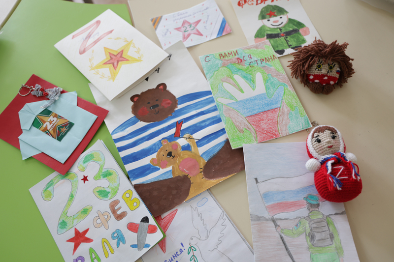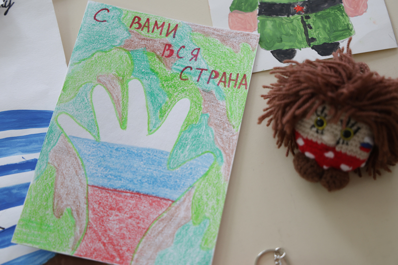 Участники передавали для наших ребят, находящихся в зоне СВО, десятки поздравительных открыток и писем с теплыми словами, мягкие игрушки ручной работы – вязаные и сшитые маленькие талисманы, деревянные брелоки с пожеланиями, плетеные браслеты-обереги и многое другое.