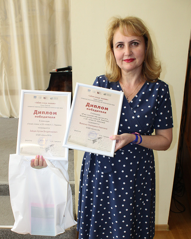 – в номинации «И мы сохраним тебя, русская речь, великое русское слово»: к 135-летию А.А. Ахматовой – Екатерина Фоменко, школа № 10, г. Рязань;