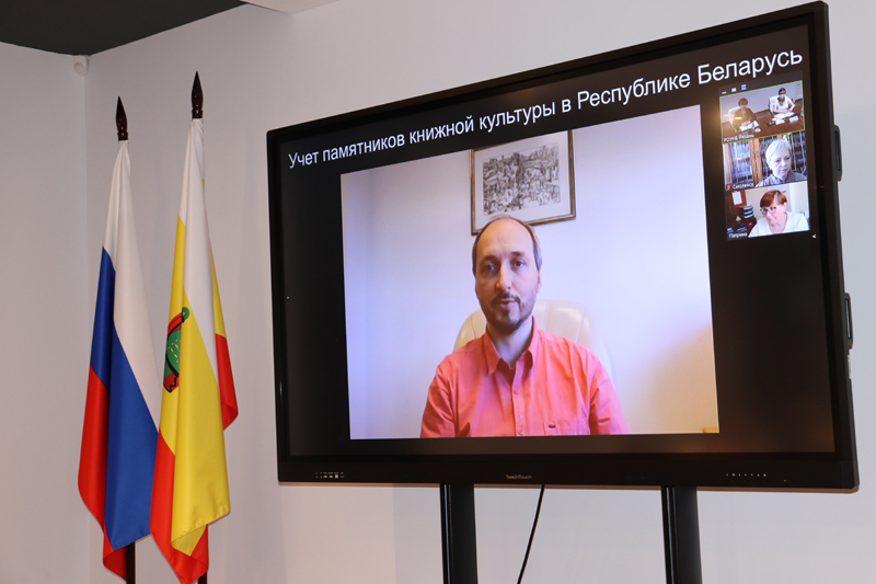 Чтения открылись видеовыступлением нашего гостя из г. Минска (Республика Беларусь) Александра Сушы, заместителя генерального директора – директора по научной работе и издательской деятельности Национальной библиотеки Беларуси, кандидата культурологии. Уничтожение библиотек в годы войны, изменение границ, вывоз книг на другие территории привело к тому, что страна потеряла значительную часть своих книжных сокровищ, поэтому в последние годы многое делается для сохранения культурного наследия, а главное, его учета. Одной из форм этой деятельности стало создание реестра книжных памятников Республики Беларусь, за основу был взят подобный российский опыт.