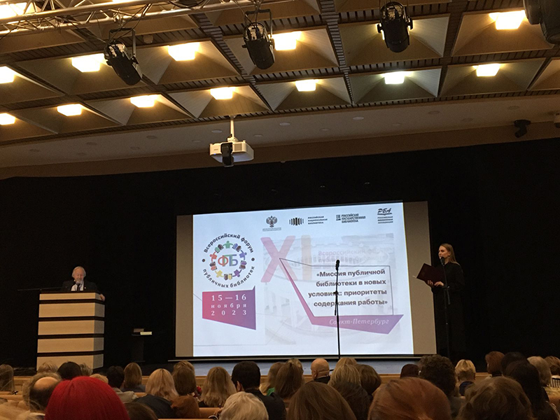 15 ноября в Санкт-Петербурге стартовал XI Всероссийский форум публичных библиотек «Миссия публичной библиотеки в новых условиях: приоритеты содержания работы». Организаторами форума выступают Министерство культуры Российской Федерации, Российская национальная библиотека, Российская государственная библиотека и Российская библиотечная ассоциация.