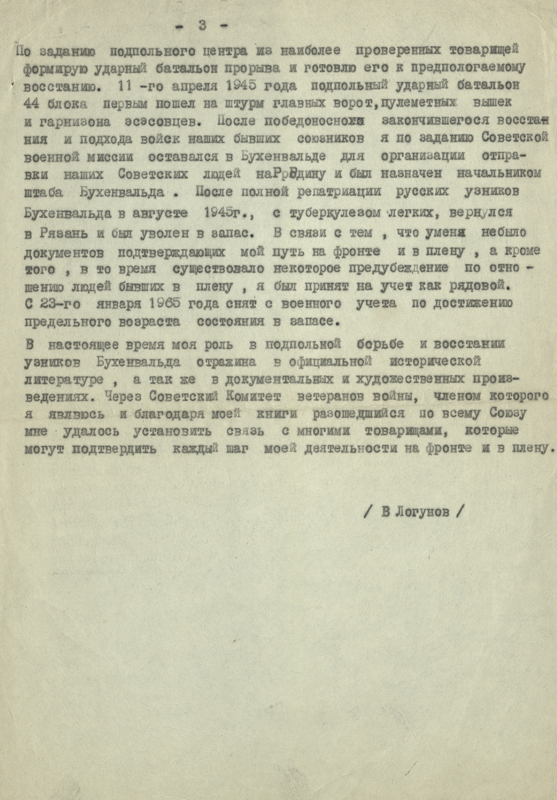 Кроме того, в фонде библиотеки в «Коллекции автографов» хранится книга «В подполье Бухенвальда» с автографом автора, а также имеются архивные материалы о Валентине Логунове. Посмотреть их можно на сканированных изображениях.