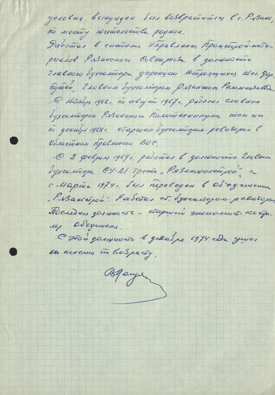 Вернулся в Рязань и стал работать на прежнем месте. В апреле 1955 г. по комсомольской путевке выехал в Казахстан на освоение целинных земель. В 1959 г. вернулся в Рязань, работал бухгалтером, затем экономистом. Умер 28 декабря 1978 года в областном центре.