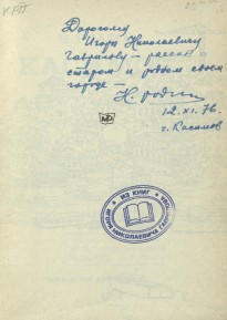 В фонде библиотеки им. Горького в «Коллекции автографов» хранятся три книги Николая Родина с автографами автора. Увидеть дарственные надписи можно на сканированных изображениях. Также в фонде нашей библиотеки хранятся письма Н.А. Родина. Познакомиться с ними можно в читальном зале нашей библиотеки.