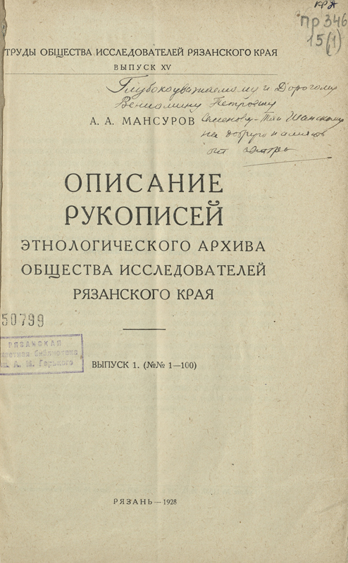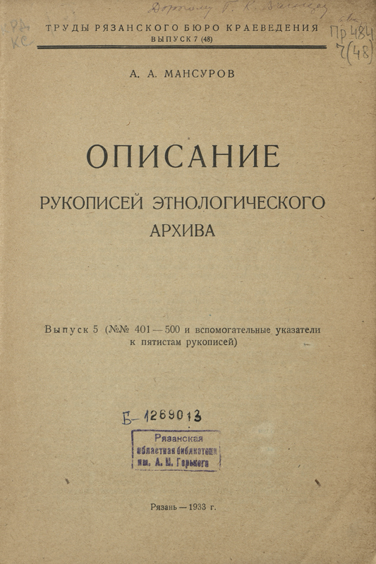 Мансуров Алексей Алексеевич: к 100-летию со дня рождения выдающегося библиографа-краеведа // Календарь знаменательных и памятных дат по Рязанской области на 2000 год. / РОУНБ. – Рязань, 1999. – С. 44–45.