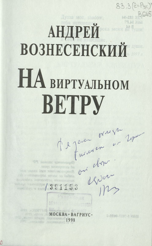 В «Коллекции автографов» хранится книга А. Вознесенского «На виртуальном ветру» с надписью: «Рязанской областной библиотеке им. Горького от автора».