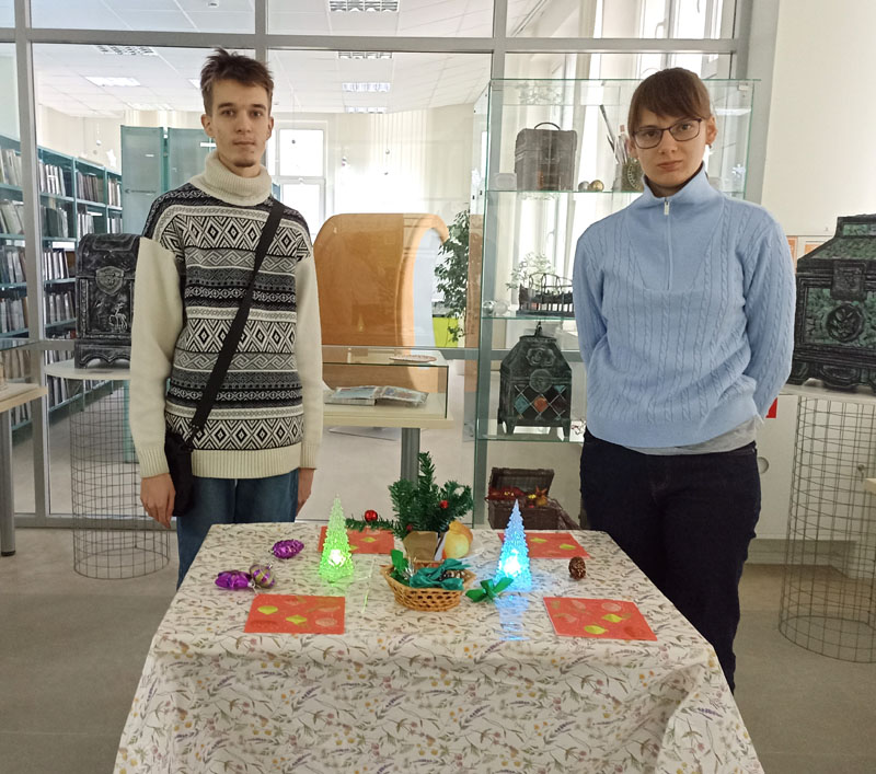 Под Новый год мы украшаем свои дома, наряжаем ёлки, готовим друг другу подарки. Студентам рассказали о том, как отмечали Новый год на Руси, когда появился обычай устанавливать на зимних праздниках ёлку. Узнали гости библиотеки и о том, как Дед Трескун постепенно превратился на Руси в Деда Мороза, и о том, что на протяжении многих лет самыми любимыми новогодними украшениями для ёлки были игрушки-сладости.
