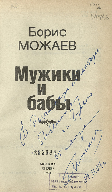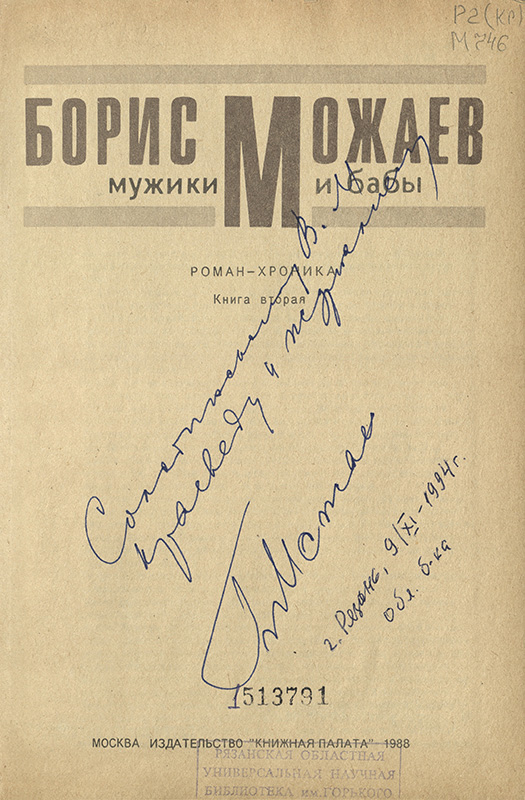 Приглашаем рязанцев и гостей города познакомиться с изданиями с автографами Б.А. Можаева в читальных залах библиотеки.