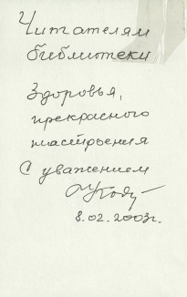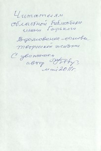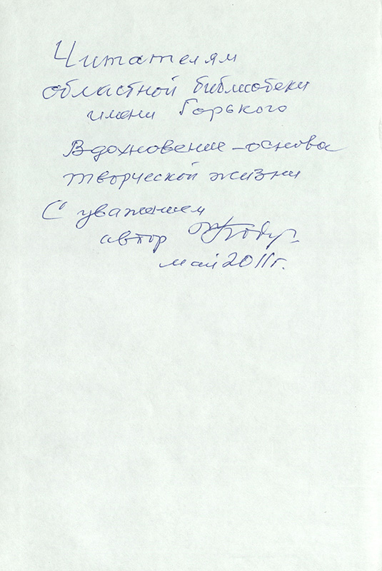 Надпись «В городскую библиотеку г. Рязани от автора» есть на сборнике стихотворений «Горжусь тобой я, Русь Святая!» (2010).