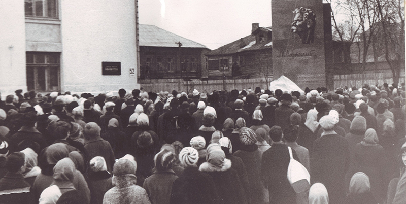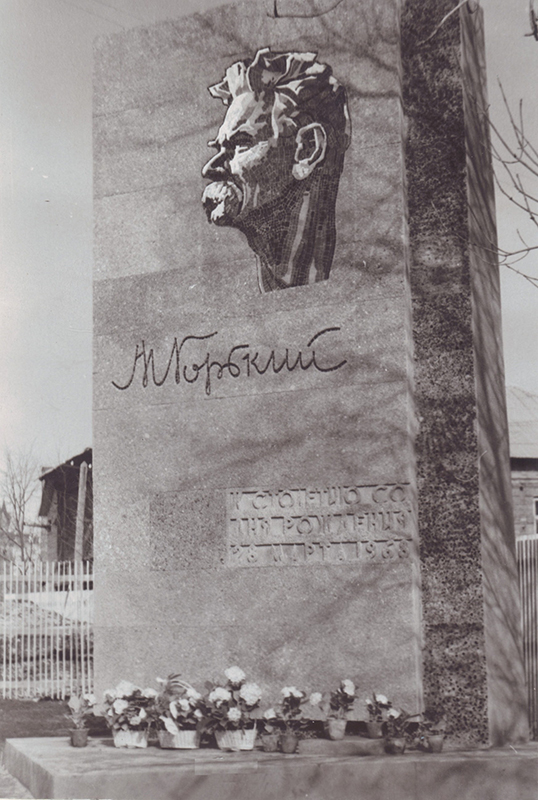 У здания библиотеки 25 марта 1968 г. была открыта стела пролетарскому писателю Максиму Горькому. Авторы барельефа – отец и сын Борис и Николай Алексеевы.