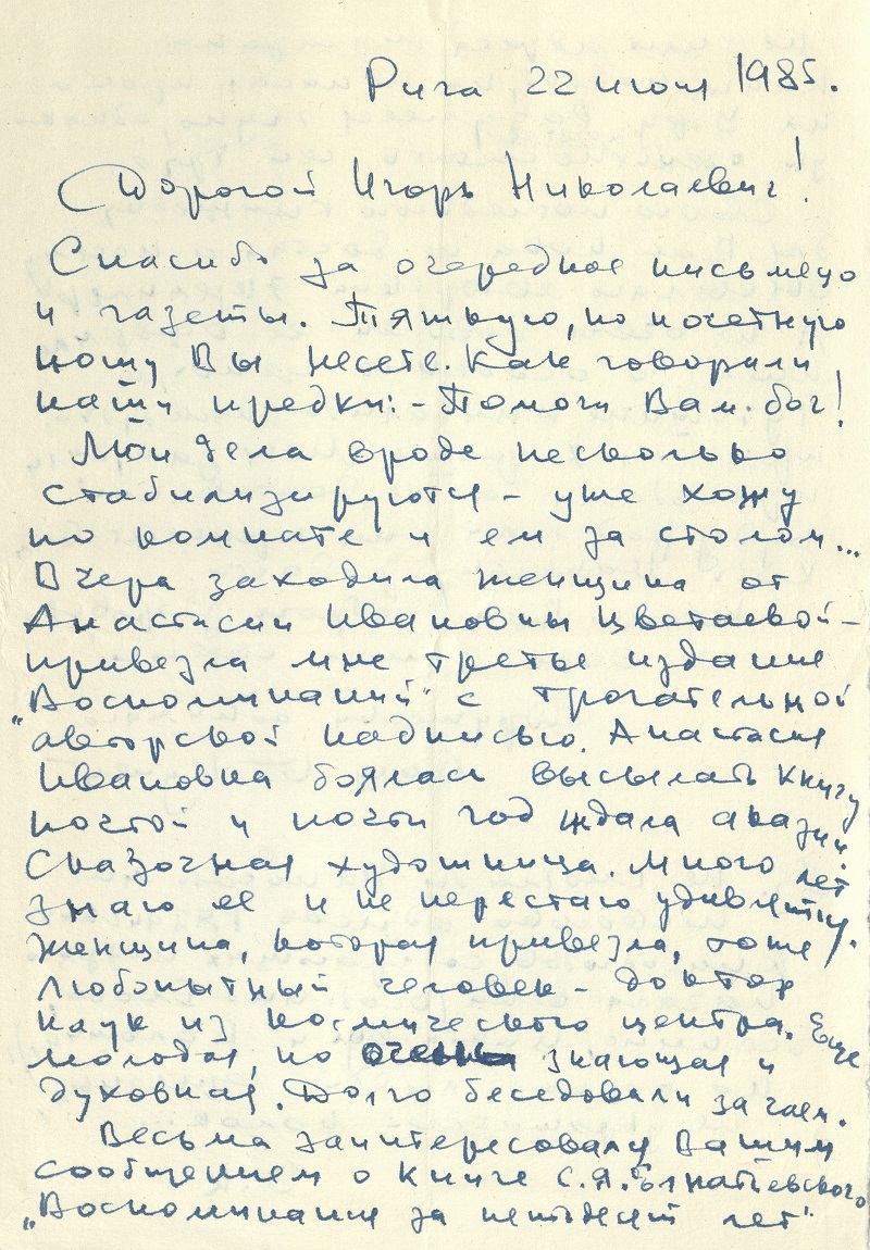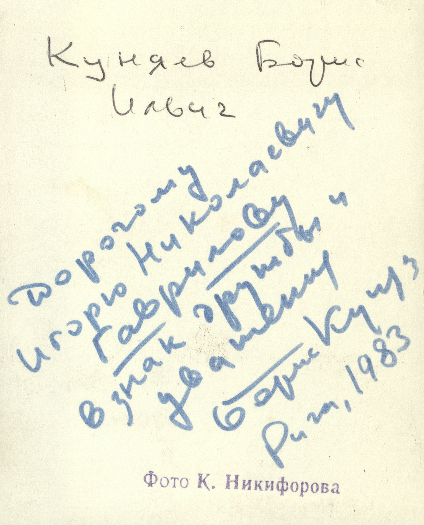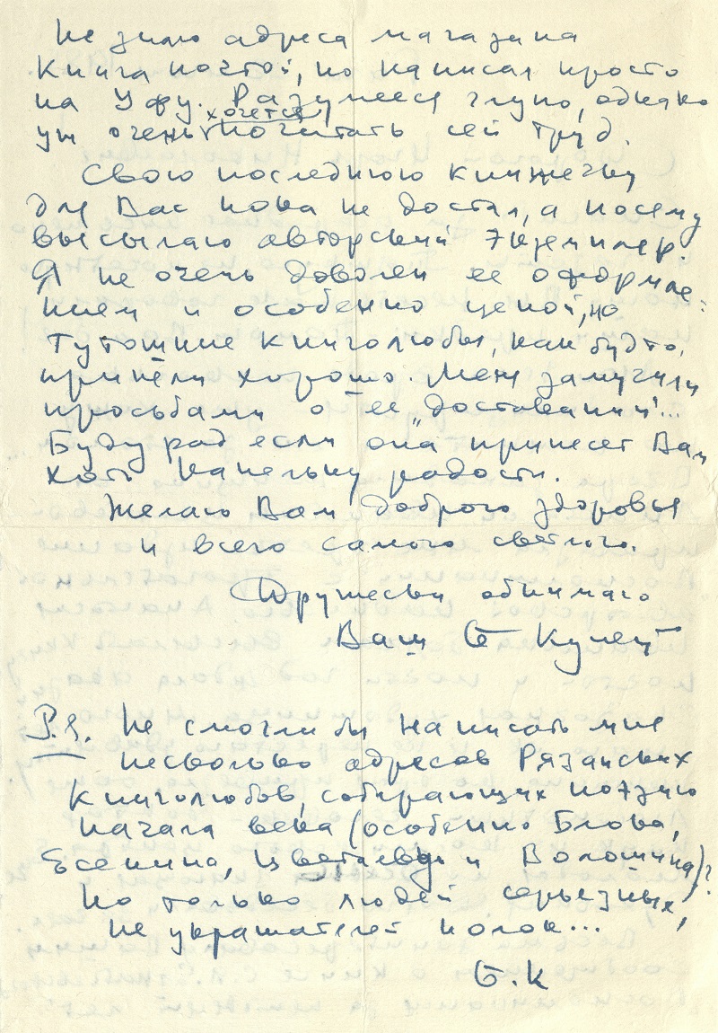 В фонде Рязанской библиотеки имени Горького в «Архиве И.Н. Гаврилова» хранится переписка Б.И. Куняева с рязанским ученым-литературоведом Игорем Николаевичем Гавриловым (1926–2003). Познакомиться с «Архивом И.Н. Гаврилова»: письмами, открытками, фотографиями можно в читальных залах нашей библиотеки.