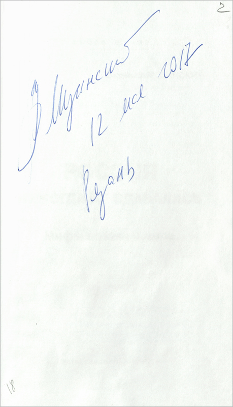 В «Коллекции автографов» нашей библиотеки хранится книга В. Мединского с автографом автора. Увидеть автограф можно на сканированном изображении.