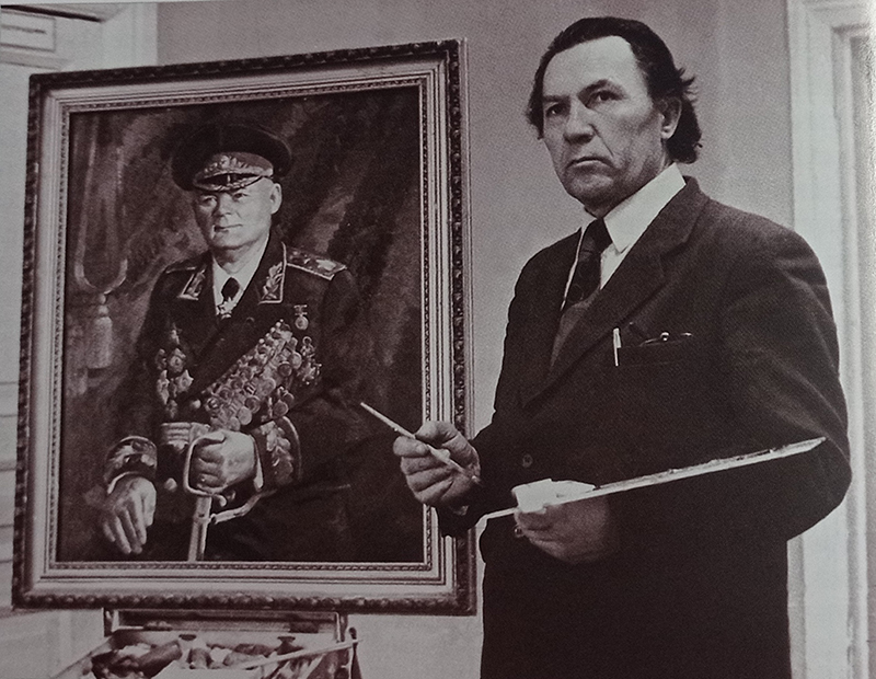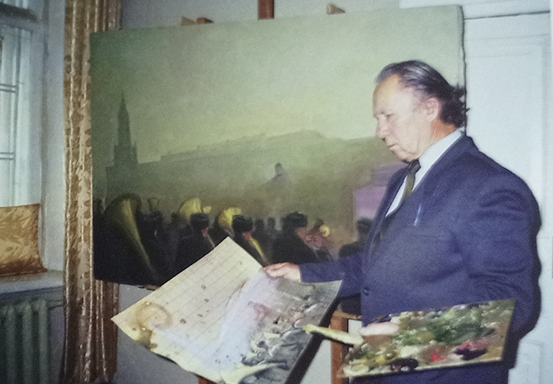 Его кисти принадлежат картина «Красная площадь. 7 ноября 1941 года» и портрет В.И. Агапкина, написанный к 120-летию нашего земляка, военного дирижера и композитора всемирно известного марша «Прощание славянки».