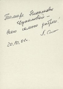 Надпись «Тамаре Николаевне Цукановой – всего самого доброго. 20.10.2001 г.» на сборнике стихов «Тишина подснежника» (2001) адресована ветерану Рязанской областной библиотеки, заслуженному работнику культуры РСФСР, организатору нотно-музыкального отдела, создателю и руководителю клуба «ОЛИМП», музыкальному краеведу и просветителю Т.Н. Цукановой (1932–2023), подарившей библиотеке часть своего частного собрания.