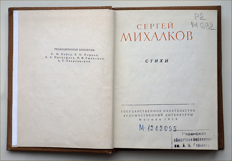 В.Н. Шестопалов (1924–1998), будучи страстным библиофилом, собрал богатейшую домашнюю библиотеку, в которой было много изданий с автографами и инскриптами авторов. В середине 1990-х годов он подарил «Горьковке» большую часть своей коллекции, в том числе и сборник стихотворений С.В. Михалкова с его дарственной надписью.