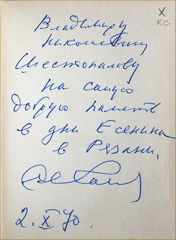 В «Коллекции автографов» Рязанской областной универсальной научной библиотеки имени Горького хранится книга С.В. Михалкова «Стихи», вышедшая в 1959 году в серии «Библиотека советской поэзии». Судя по дарственной надписи автора, адресованной заведующему отделом пропаганды и агитации Рязанского обкома КПСС Владимиру Николаевичу Шестопалову, сборник был подарен накануне проведения праздника в селе Константиново, на родине Сергея Есенина. 3 октября 1970 года в Доме культуры состоялся литературно-музыкальный вечер, посвященный 75-летию со дня рождения поэта, на котором выступил председатель правления Союза писателей РСФСР С.В. Михалков. Он сказал много теплых слов о творчестве нашего знаменитого земляка, о месте и значении его поэзии в советской литературе.