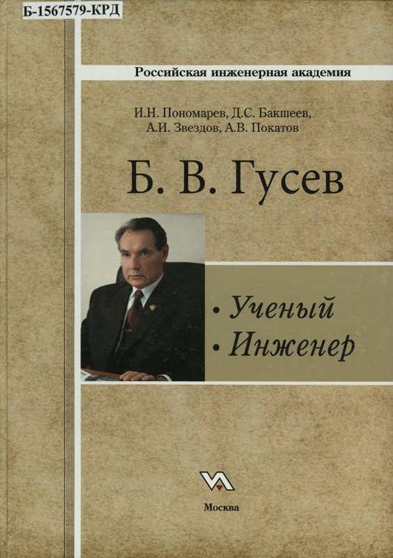 Б. В. Гусев - ученый и инженер / И. Н. Пономарев, Д. С. Бакшеев, А. И. Звездов, А. В. Покатов ; Рос. инженерная акад. – Москва : Инженерная академия, 2016. – 167 с., ил.